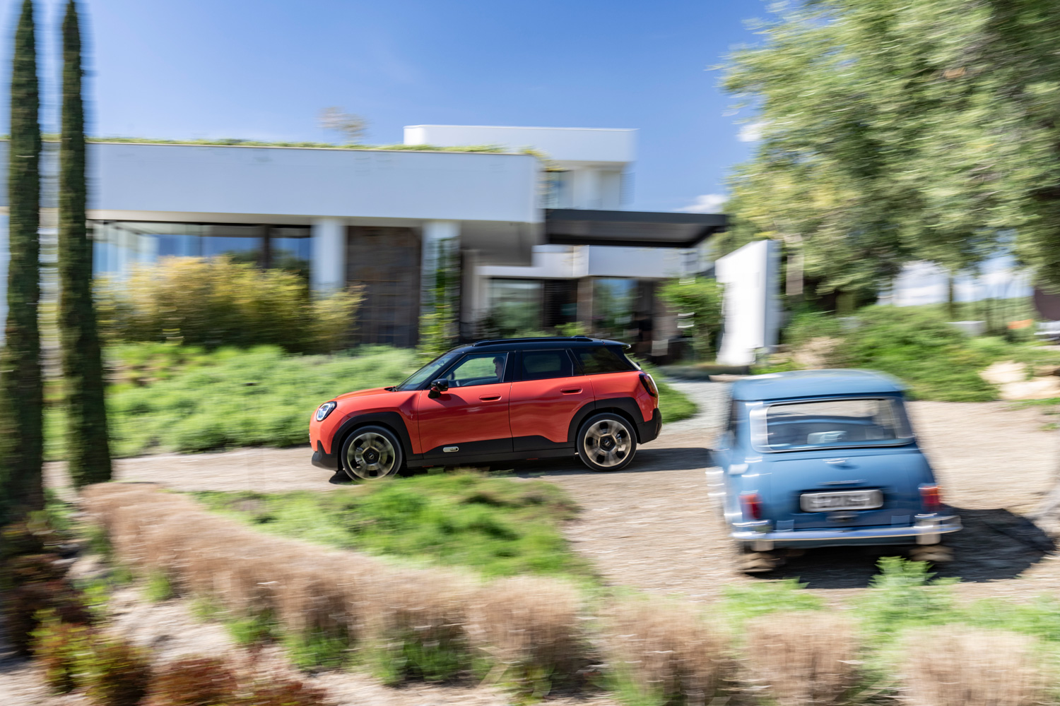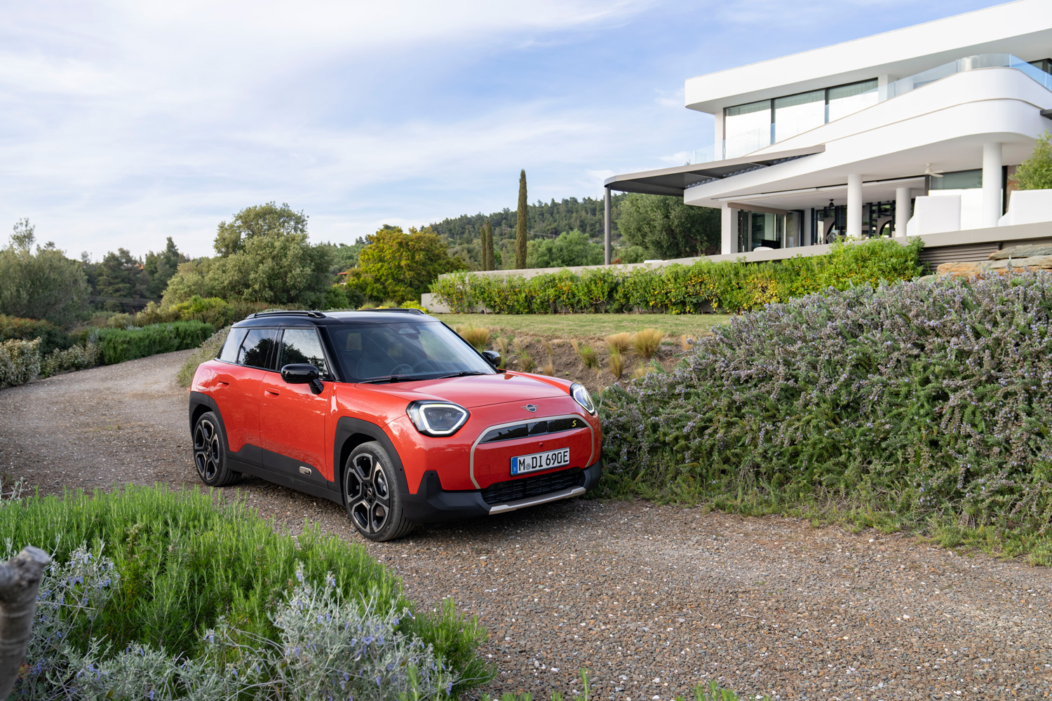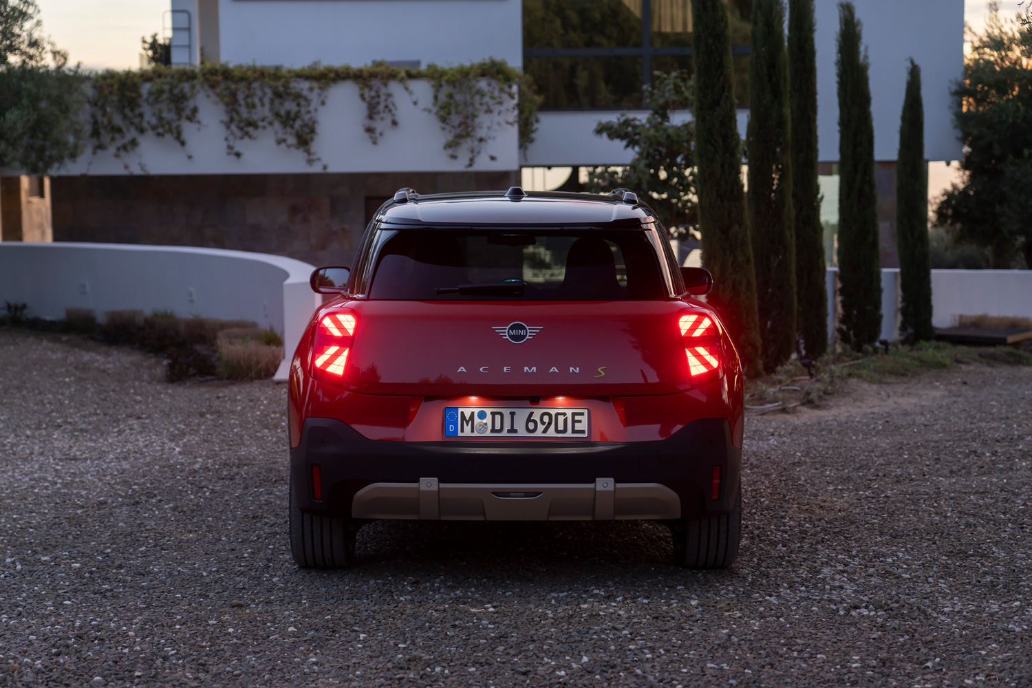 El Mini Aceman muestra una imagen moderna y juvenil con una personalidad propia con respecto al resto de modelos de la marca; eso sí, manteniendo algunos detalles distintivos en todos los vehículos de Mini. También mantiene las formas cuadradas, con el añadido de una serie de detalles, como es el caso de las barras del techo, de serie en todas sus versiones, y unas protecciones en los pasos de rueda y en la parte inferior de la carrocería, que le dan un toque muy aventurero. Enfatizando su lado más práctico, su carrocería tiene cuatro puertas, una solución que aporta una mayor versatilidad de uso.